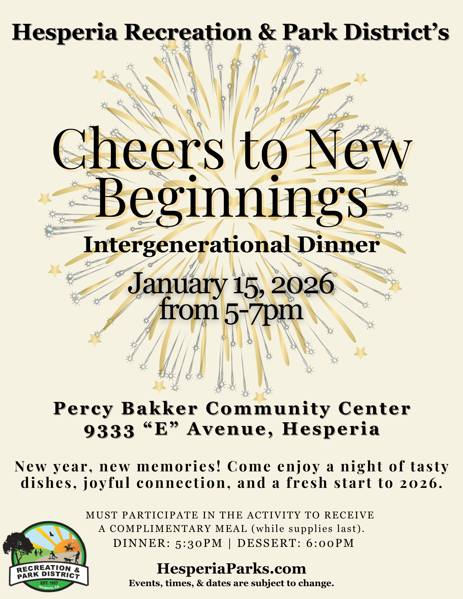 January 15 โ January 15Cheers to new beginnings! ๐ Join the Hesperia Recreation & [...]