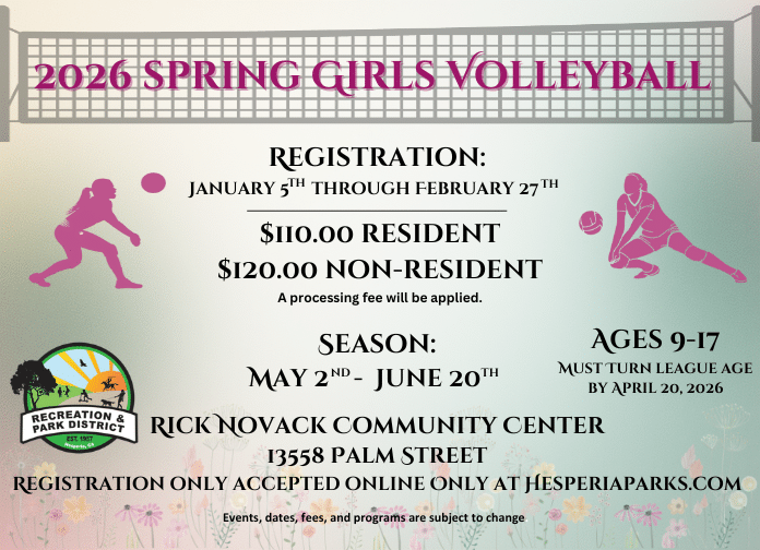 January 5 โ February 27Serve up some fun! ๐ The 2026 Spring Girls Volleyball [...]