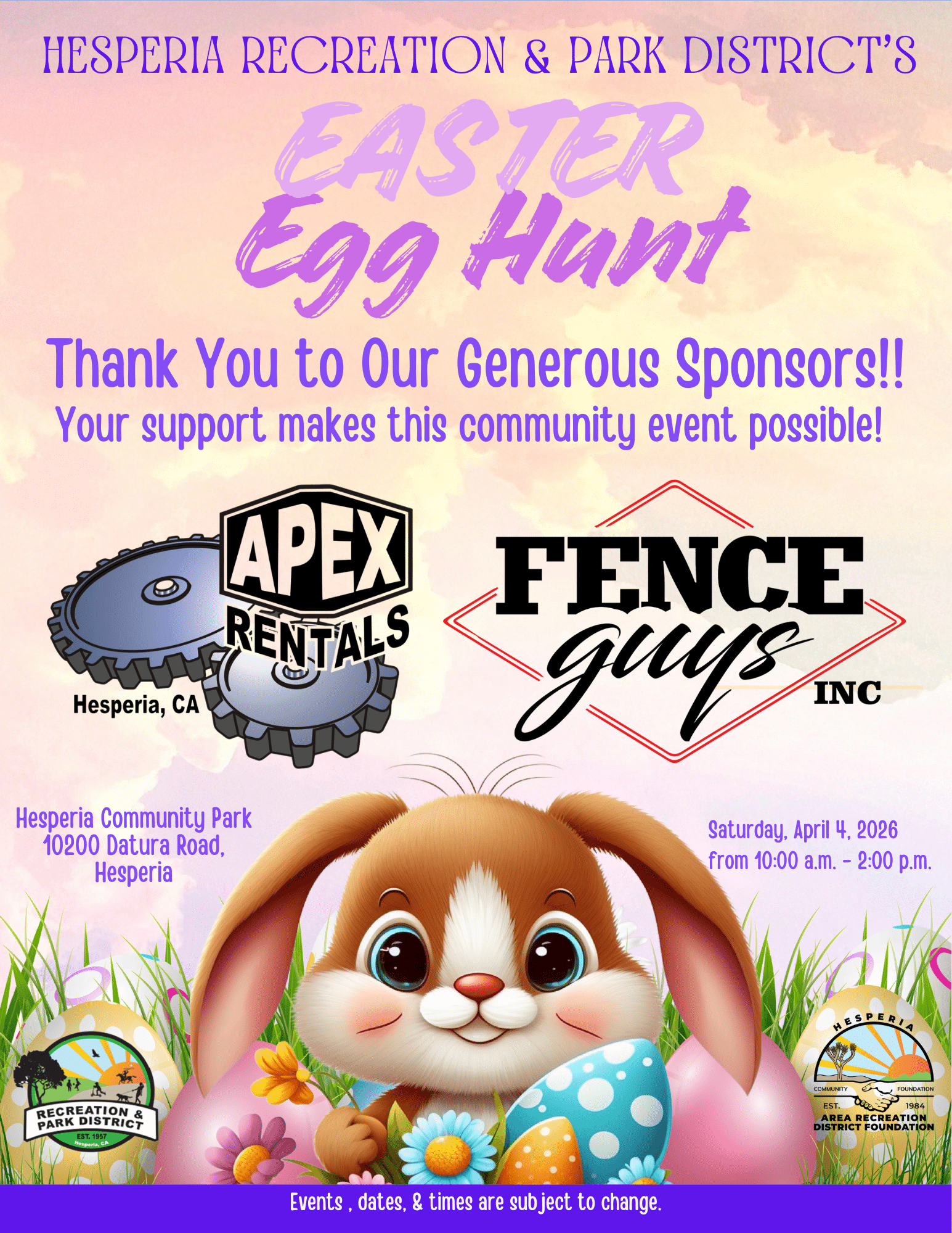The Hesperia Recreation & Park District extends our sincere appreciation [...]