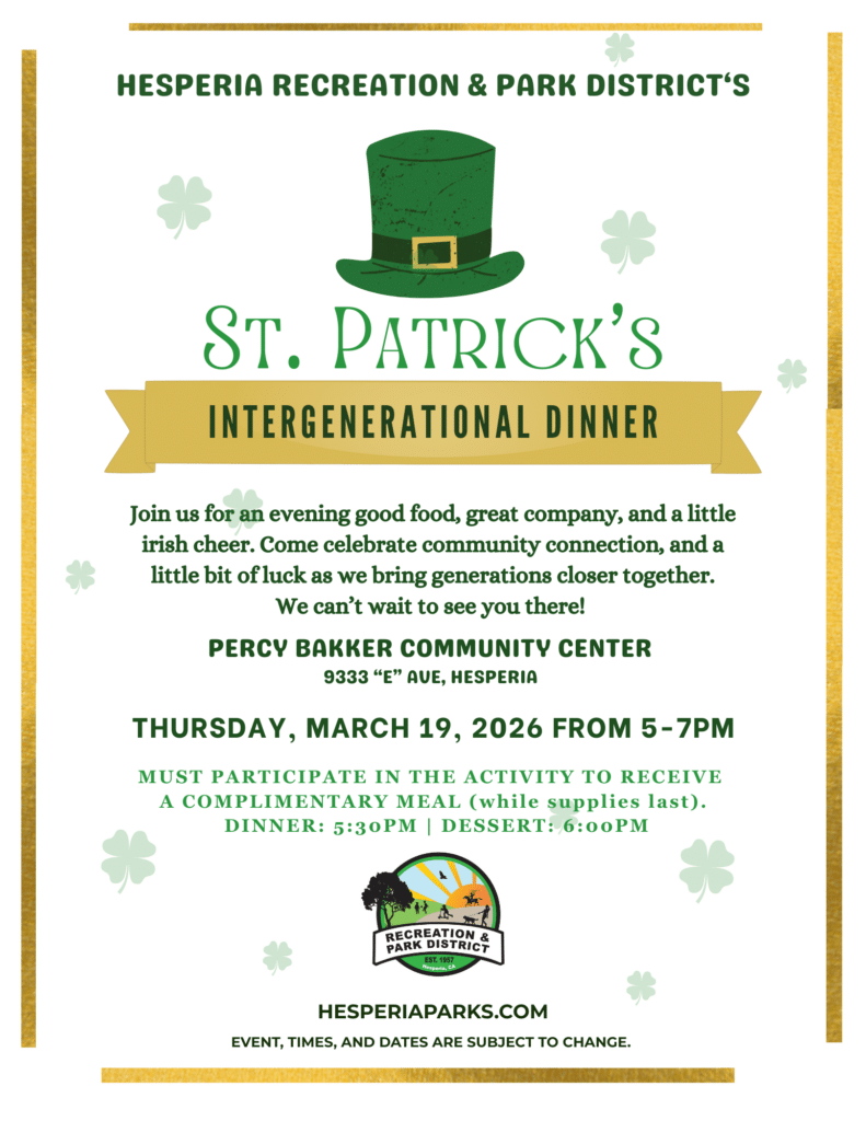 | FreeJoin us for our Monthly Intergenerational Dinner for a delicious meal, themed activity and mingle with friends. There is always a little something for everyone to enjoy. This free event is open to all ages and we encourage everyone to mingle, make friends and have some fun. Hosted by Barstow Senior Nutrition, funding for this event is provided by San Bernardino County Department of Aging & Adult Services – Public Guardian through a grant award from the California Department of Aging.