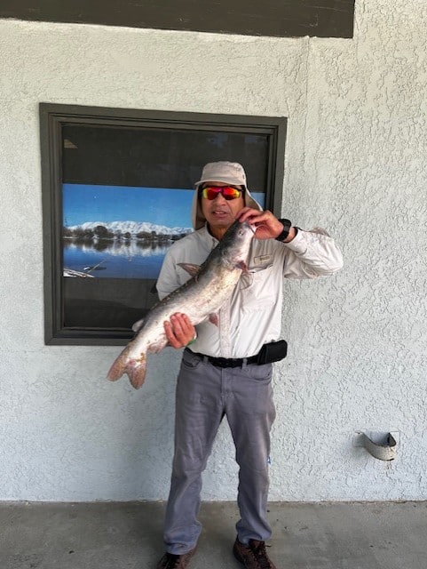 Alvaro R from Los Angeles caught this massive 16.5LB Catfish on Garlic Shrimp at the Grassy Bank!!
