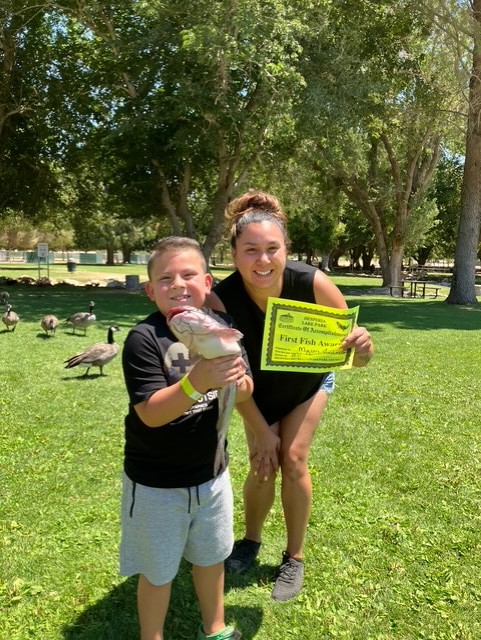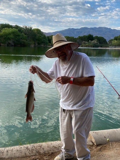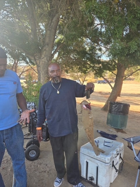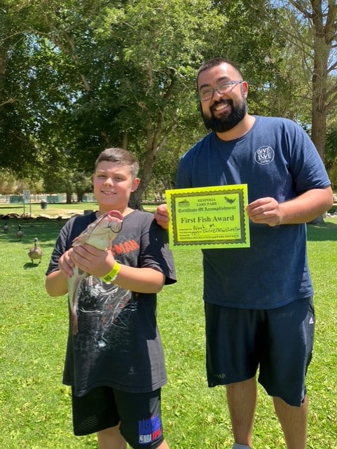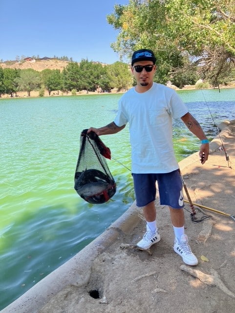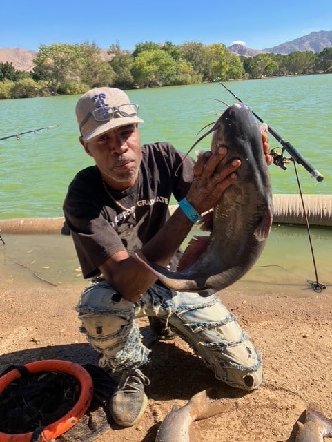 Sebastian from Hesperia caught this 5LB Catfish using garlic nightcrawlers at Grassy Bank.