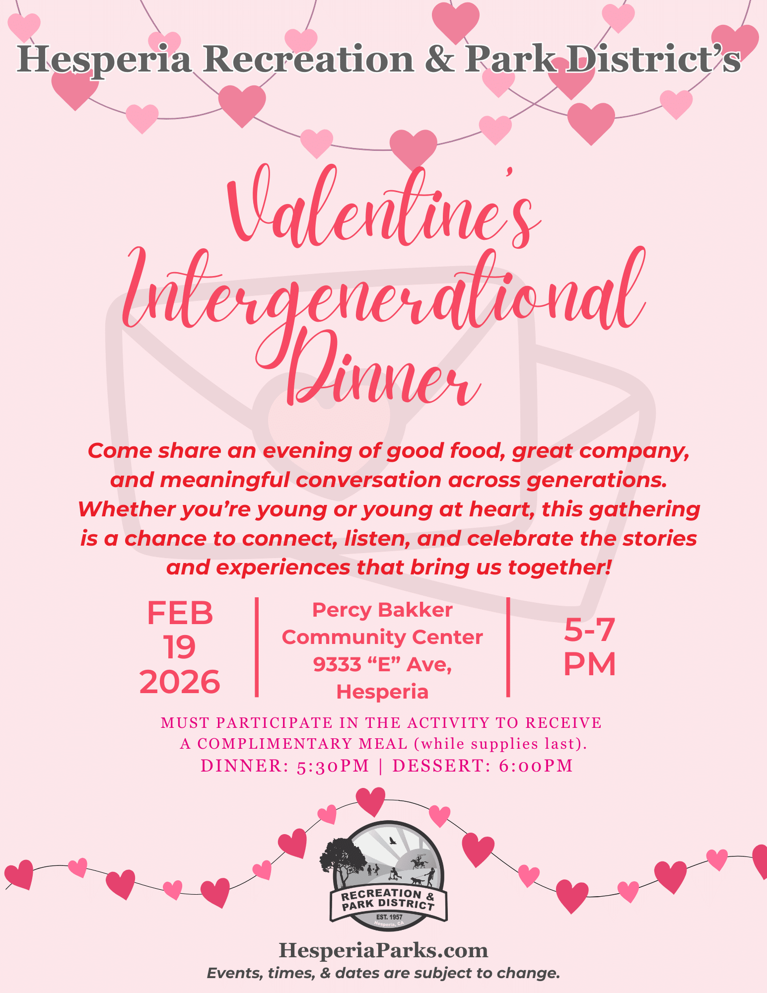 💖 Hesperia Recreation and Park District’s Valentine’s Intergenerational Dinner 💖 [...]